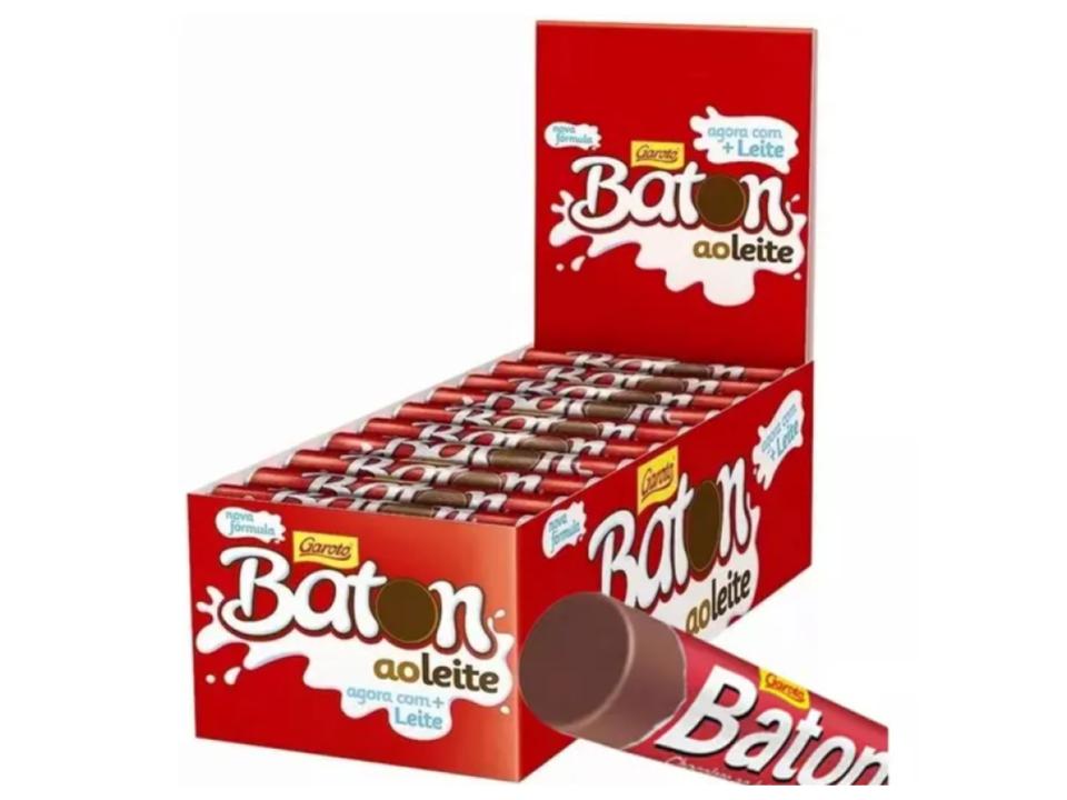 Ingredientes: O Chocolate Baton Ao Leite contém açúcar, leite em pó integral, manteiga de cacau, liquor de cacau, gordura vegetal, emulsificantes lecitina de soja e poliglicerol poliricinoleato e aromatizante. ALÉRGICOS: O BATON AO LEITE PODE CONTER TRAÇOS DE SOJA, AMENDOIM, AMÊNDOA, CASTANHA DE CAJÚ, CASTANHA DO PARÁ, AVELÃ, AVEIA, CEVADA E DE TRIGO. CONTÉM GLÚTEN. CONTÉM LACTOSE.